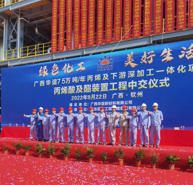 廣西華誼丙烯酸及酯生產(chǎn)項目總投資22.6億元,于2021年3月開工建設(shè),主要建設(shè)2套20萬噸/年丙烯酸及酯裝置、1套8.4萬噸/年精酸裝置、1套6萬噸/年商品酸裝置、配套公用工程及輔助設(shè)施。