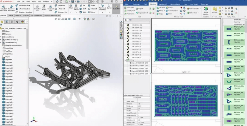 目前,大部分國(guó)內(nèi)使用3D設(shè)計(jì)軟件的企業(yè),還需要有一批的展開(kāi)人員,將設(shè)計(jì)好的產(chǎn)品展開(kāi),然后才能再交給下料部門(mén)去準(zhǔn)備生產(chǎn),甚至出現(xiàn)有一些企業(yè)的展開(kāi)人員數(shù)量比排版套料人員還要多的奇怪現(xiàn)象。其實(shí),如今的最新技術(shù),已綷-辦到了能夠從一個(gè)三維的產(chǎn)品設(shè)計(jì),到自動(dòng)展開(kāi)和排版,生成切割代碼,都可以一次自動(dòng)完成。SigmaNEST目前支持的軟件:Solidworks、
